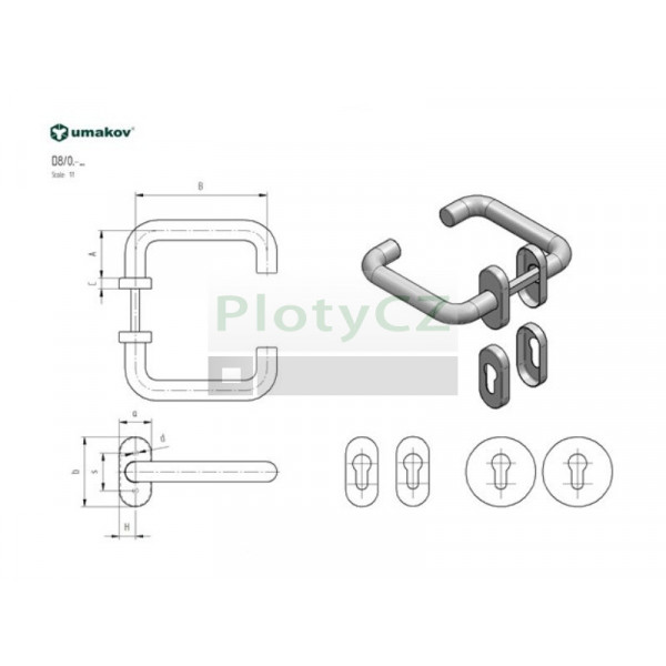 Materiál: Nerez AISI 304, Povrchová úprava: Brus, Phi sq: 8, A: 45, C: 10, B: 120, D: 52