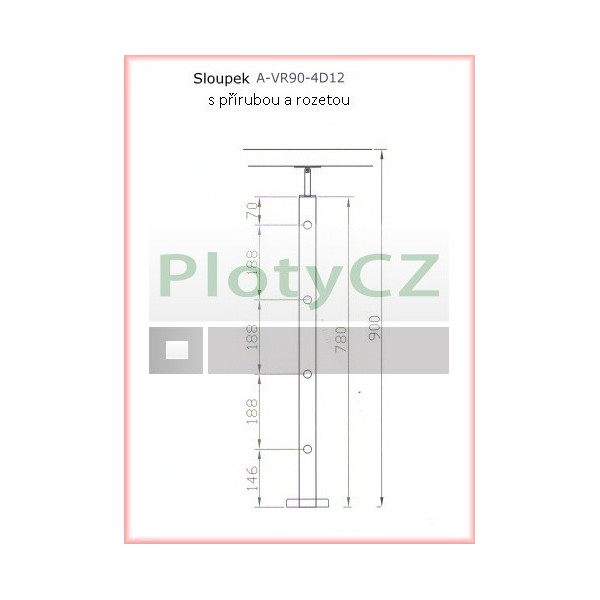 Nerezový sloupek D42,4mm pro madlo D42,4mm, vrchní kotvení, materiál AISI 304, brus K320, horizontální výplň 4 x d12mm.