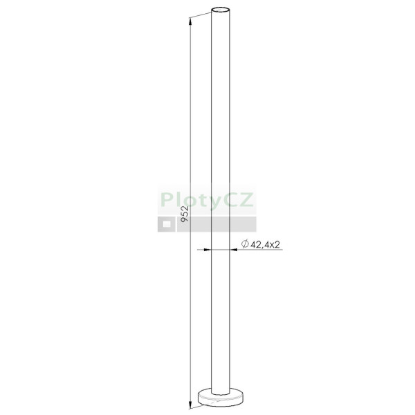 Nerezový sloupek D42,4mm - hladký. Vrchní kotvení, materiál AISI 304, brus K320. Kotvící příruba + rozeta. Sloupek bez otvoru.